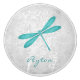 Add an elegant touch to cabinetry or furniture with a Teal Dragonfly Personalised Ceramic Pull. Pull design features a colourful dragonfly, a soft white leafy vine against a light grey grunge damask background with an area to personalise with your name. Additional gift items available with this design as well as a variety of colours.