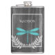 Enjoy your favourite alcoholic beverages anytime with a Teal Dragonfly Rustic Vinyl Wrapped Flask. Flask design features a vibrant dragonfly adorned with delicate foliage against a dark grey rustic wooden background. Additional gift items available with this design as well.