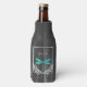 Keep your bottle beverages cold during summer outings with a Teal Dragonfly Rustic Personalised Bottle Cooler. Cooler design features a vibrant dragonfly adorned with delicate foliage against a dark grey rustic wooden background. Additional gift items available with this design as well as a variety of colours.
