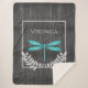 Teal Dragonfly Rustic Personalised Sherpa Blanket