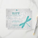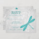 Send guests a simple and elegant Teal Dragonfly Wedding RSVP Card with your invitation. RSVP card design features a vibrant dragonfly against an elegant floral vine and grey damask background. Personalise with the response date and menu choices. Additional wedding stationery available with this design as well. Need help with customisation? Please contact me and I will work out the wording and details to fit this design to your satisfaction.
