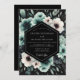 Evoke a sense of dramatic romance with this moody and elegant botanical design. A striking palette of deep teal, soft white, and blush pink blossoms pops against a dark charcoal background. Exquisite, painterly anemones with dark centers are complemented by delicate smaller blooms and lush, shadowy foliage for a truly enchanting feel.
