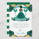 Elegant watercolor Dark Skin princess in Teal dress design with Teal and gold flowers, balloons and gold glitter confetti.