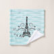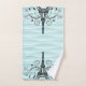 Add a touch of Paris to your bath with this unique Teal Eiffel Towel Flourish Towel Set. Towel set design features a vibrant wavy background with the Eiffel Tower adorned with elegant flourishes and space to personalise with your name. Additional colours available with this design as well.  Please contact me directly if you need assistance with personalisation.