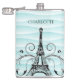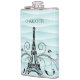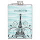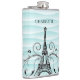 Enjoy your favourite alcoholic beverages anywhere with a Teal Eiffel Tower Flourish Flask. Flask design features the Eiffel Tower adorned with elegant flourishes against a teal wavy background. Additional colours available with this design as well. This item may be personalised with a name, monogram, or favourite saying of your choosing. Please contact me if you need assistance with personalisation.
