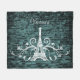 Stay warm on chilly nights with a Teal Eiffel Tower Grunge Personalised Fleece Blanket. Blanket design features a grungy brick background in teal with the Eiffel Tower adorned with elegant flourishes and space to personalise with your name. Additional colours available with this design as well. This item may be personalised with a name, monogram, or favourite saying of your choosing. Please contact me if you need assistance with personalisation.