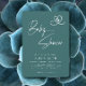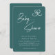 This teal baby shower invitation features elegant script lettering and a sweet heart with baby footprints. Designed for modern and neutral celebrations, it offers a refined way to invite guests while perfectly complementing minimalist, contemporary, and gender-neutral baby shower décor themes.