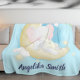 Teal Elephant Crescent Moon Personalised Name Fleece Blanket
