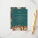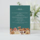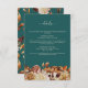 Teal Fall Details Enclosure Card. Keep guests informed with this vertical details enclosure card, designed to pair seamlessly with your fall wedding invitations. Featuring your text on the front and a coordinating pattern of watercolor fall leaves—terracotta, burnt orange, copper, and beige blooms—on a rich teal background on the reverse, this card is both functional and visually captivating. Whether sharing accommodations, directions, or special instructions, it ensures that every detail is presented beautifully. Customise it and make every element of your suite unforgettable.