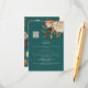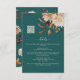Teal Fall Details Enclosure Card. Share all your essential wedding information in style with this vertical details card, designed as part of the Teal Terracotta Fall Leaves Floral Collection. Featuring a space for a QR code linking guests directly to your wedding website or registry, this card is both practical and beautifully on theme. The front is framed with elegant typography and autumnal tones, while the back showcases a coordinating pattern of hand-painted watercolor florals—burnt orange and terracotta leaves, cream and beige dahlias, and copper-toned roses—set against a rich teal background. It’s the perfect way to keep guests informed while seamlessly tying into your fall wedding aesthetic. Customise it now to make it your own.