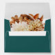 Teal Fall Terracotta Floral Return Address Envelope. This elegant and rustic wedding envelope features hand-painted watercolor burnt orange and terracotta leaves, cream and beige dahlias, and beautiful rust-coloured roses perfect for a fall or autumn wedding! The back of the envelope has the bride and groom's return address. This design is part of the Autumn Romance collection that can be viewed by clicking on the above collection link.