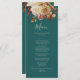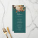 Teal Fall Wedding Menu. Enhance your reception tables with this coordinating menu card that brings autumn warmth to every place setting. Showcasing the collection’s signature hand-painted watercolor elements—terracotta and burnt orange leaves, soft beige dahlias, and copper-toned roses—on a rich teal backdrop, this menu adds a thoughtful and cohesive touch to your event. It’s the perfect way to introduce the meal while weaving in your wedding palette. Customise your menu and let the design tie everything together.