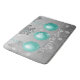Add a holiday touch to your bath with this festive Teal Fancy Christmas Ornament Bath Mat. Bath mat design features a teal fancy ornament against a grey gradient background adorned with falling snowflakes. Additional gift and holiday items available with this design as well.