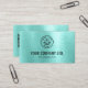 This custom business card design features a vibrant brushed metallic teal background, offering a fresh and contemporary aesthetic. Your personalised logo and company information are elegantly displayed on the front in a crisp dark font, complemented by a neatly organised array of contact details and a QR code on the reverse. This striking design ensures your brand makes a memorable and modern statement.