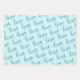Teal Faux Foil Hearts Love Script | Turquoise Wrapping Paper Sheet