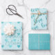 Stylish birthday gift wrapping supplies featuring three elegant, girly and cute teal rough metallic textured designs. First, teal tiny hearts seamless pattern on soft turquoise with personalised happy birthday script typography. Second, teal foil love script pattern on soft turquoise. Third, teal faux rough teal foil textured background. Would make a beautiful detail for a special girls birthday gift.