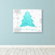 Make your walls vibrant this holiday season with a Teal Festive Christmas Tree Stretched Canvas Print. Canvas print design features a vibrant and festive Christmas tree adorned with falling grey and white snowflakes with a holiday greeting. Additional gift and holiday items available with this design as well.