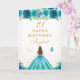 Teal Floral Brown Hair Girl Happy Birthday Card