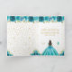 This elegant and glamorous birthday card can be personalized with a name or title such as daughter, granddaughter, niece, friend etc. The design features a beautiful princess with brunette hair and fair skin in a teal blue ball gown. The text combines handwritten script and modern sans serif fonts for a classy and sophisticated look. The floral arrangements, butterflies and gold confetti create the perfect blend of rustic and chic.