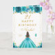 Teal Floral Brunette Hair Girl Birthday Card