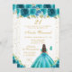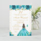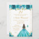 Teal Floral Brunette Hair Princess Birthday Party Invitation