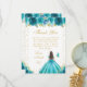 Teal Floral Brunette Hair Princess Sweet Sixteen Thank You Card