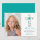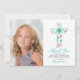 This one photo First Holy Communion thank you card features a teal floral watercolor cross with pink flowers and greenery leaves and foliage. Perfect for any religious event: First Communion, Baptism, Christening or Confirmation.