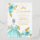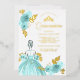 Teal Floral Dress Princess Quinceanera Gold