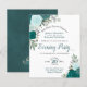 These affordable, budget friendly evening party invitations are perfect for inviting your friends and family to celebrate your wedding without spending a fortune on the invitations. The elegant design features hand painted watercolor roses in shades of teal, turquoise, aqua, and cyan, with a bevy of eucalyptus leaves and greenery. The typography features fancy script calligraphy, and the back is a deep marbled teal colour.