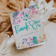 Show your appreciation to nurses, doctor and medical team with this chic elegant editable pink font stethoscope nurse thank you card with hand painted bright summer dried and pressed flowers in pink, yellow, purple, teal leaves arrangement and modern and chic script calligraphy and gold glitter confetti.