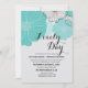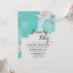 A modern, floral invitation perfect for a summer or seaside wedding. The invitation features abstract flowers in teal and white against a light grey background. The card is easy to customise with your wording, font, font colour, paper shape options and choice of six paper types.