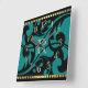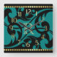Teal Flourish Design Gold Border with Monogram Square Wall Clock