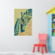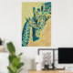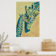 An affectionate mother and baby giraffe in shades of teal, aqua and tan
