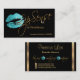 Teal Glitter and Gold Lips Business Card