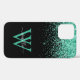 Modern iPhone 12 Pro Case in black and teal glitter, elegantly adorned with your script monogram, first name and initial.