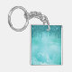 Teal Glitter Rain on Luxury Metal Marble Key Ring