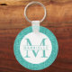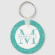 Teal Glitter Turquoise Monogram Keychain