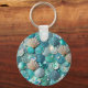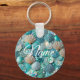 Teal Glittery Mermaid Print With Seashells Key Ring
