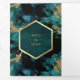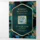 Teal Gold Abstract Fluid Ink QR Code Wedding Tri-Fold Invitation