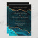 Aqua blue with Gold Glitter elegant Agate Wedding Invitation. Created by © Lesruba Weddings.