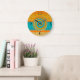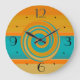 A simplistic design in teal, gold and orange which includes a swirl pattern centre.Large Numerals complete this interesting kitchen clock design. Perfect for home or any special occasion .