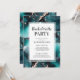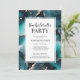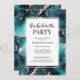 Trendy and modern Bachelorette or Hen's Party invitation featuring teal and gold alcohol ink pattern and matching back page.