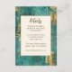 Wedding enclosure card depicts a modern beautifully designed teal and gold abstract watercolor background. It features reception and wedding website information and can be customised to the details of your choice.