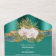 Teal gold orchid glitter island tropical wedding all in one invitation
