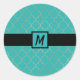 Teal & Gold Quatrefoil Monogrammed Party Classic Round Sticker