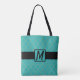 Teal & Gold Quatrefoil Monogrammed Tote Bag