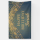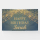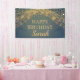 Elegant teal with glittering gold string lights and sparkling bokeh "Happy birthday" party banner personalised with the name of the guest of honour.