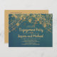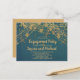 Elegant teal with glittering gold string lights and bokeh engagement party invitation postcard.