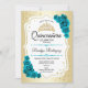 Teal Gold White Elegant Quinceanera Invitation