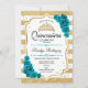 Teal Gold White Stripes Quinceanera Invitation